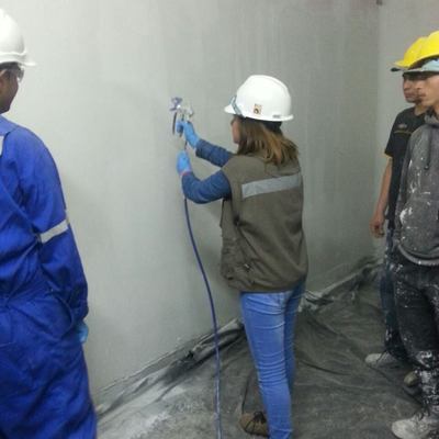 Aplicacion de grano en pasillos y fachadas